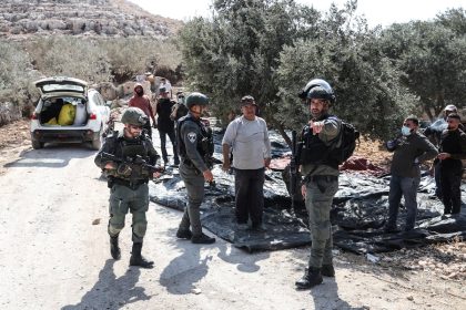 Apenas 20 metros separan a los soldados israelíes de los agricultores palestinos…