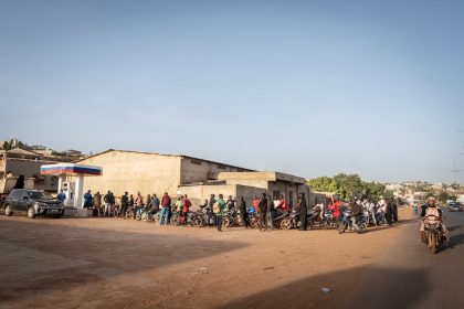Al volante de su viejo Mercedes amarillo, Amadou F. da vueltas en…