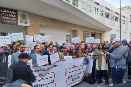 Dos centenares de periodistas marroquíes han protestado este viernes ante la sede…