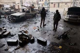Parte de los 155.000 civiles desplazados de los barrios de Ashrafiyeh y…